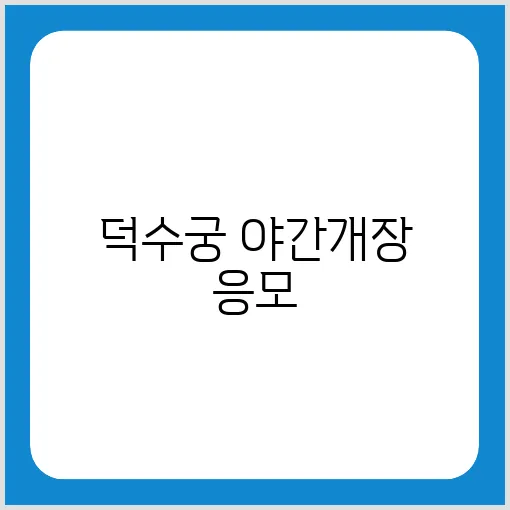 야간개장에 응모하려면 덕수궁 공식 홈페이지나 관련 이벤트 페이지를 방문하여 신청서를 작성해야 합니다. 보통 신청은 선착순 또는 추첨제로 진행됩니다.